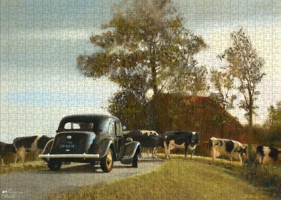 Puzzel 1000 stukjes van een oldtimer op een oude dijk van kunstenaar Martin Sijbesma // 48,5 x 68 cm