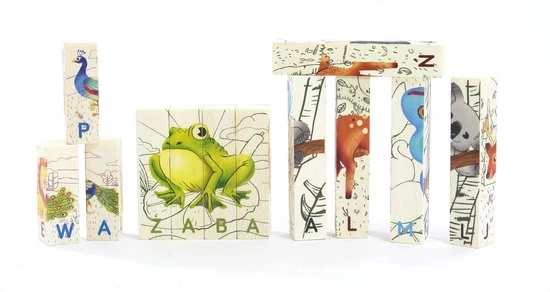 Bajo houten bouwpuzzel Dierenrijk (Pools) – 12 stukjes