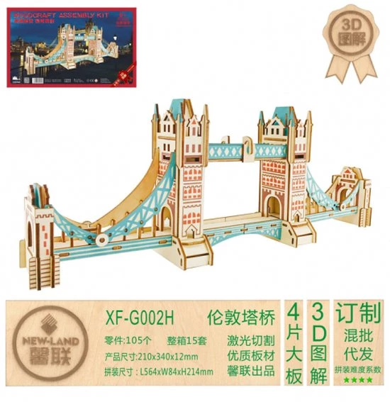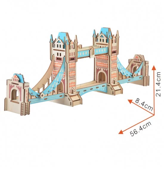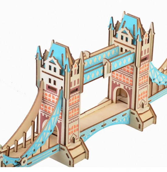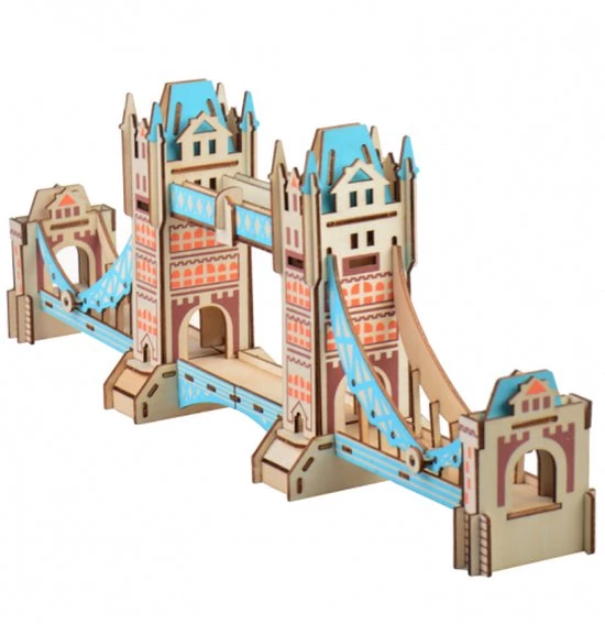 Houten bouwpakket van de Tower Bridge in Londen- kleur