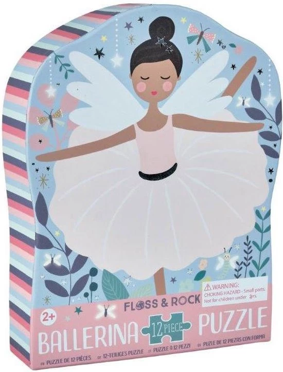 Floss & Rock Puzzel, Ballerina. Deze leuke puzzel in de vorm van een ballerina is perfect voor de beginnende puzzelaar. Het puzzelen bevordert de oog-hand coördinatie en traint het geheugen. De puzzel bevat grote stukken en is een geweldig cadeau om te geven aan elke ballerina in spé. De puzzel wordt geleverd in een mooie opbergdoos.