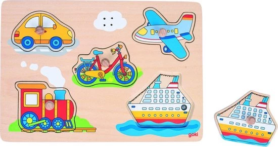 Goki 5-delige knopjespuzzel met geluiden van voertuigen.