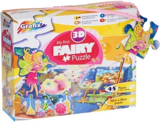 | Verpakkingsinhoud | 3D, puzzel, thema, My, first, Fairy, Grafix.<br, />Toverfee.<br, /><br, />45, puzzelstukjes<br, />Afmeting:, 29, X, 39, CM. |