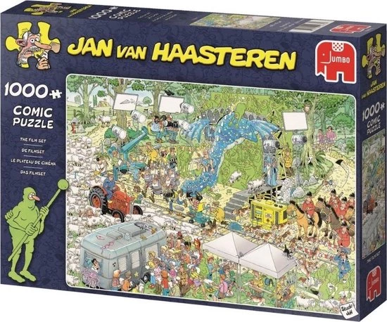 Jan van Haasteren De Fimset Puzzel met 1000 Stukjes is een van de nieuwe puzzels van Jan van Haasteren. Op deze Filmset verloopt niet alles even soepel. De Filmset van Jan van Haasteren puzzel met 1000 stukjes voor de echte Jan van Haasteren fans! Zodra je Jan van Haasteren De Filmset met 1000 Stukjes begint te puzzelen stuit je op het ene na het andere hilarische tafereel.