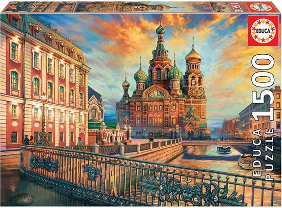 Educa Saint Petersburg. Aantal puzzles: 1500 stuk(s). Genre: Stad, Thema: Saint Petersburg, Aanbevolen leeftijd (min): 12 jaar, Aanbevolen leeftijd (max): 99 jaar. Breedte: 850 mm, Hoogte: 600 mm