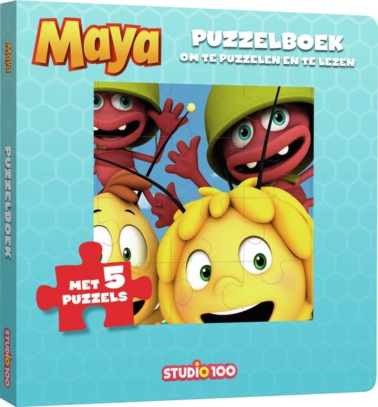 | Verpakkingsinhoud | Maya, de, Bij, puzzelboek, met, 5, puzzels, en, 4, grappige, verhalen., Iedere, puzzel, bestaat, uit, 16, puzzelstukjes. |