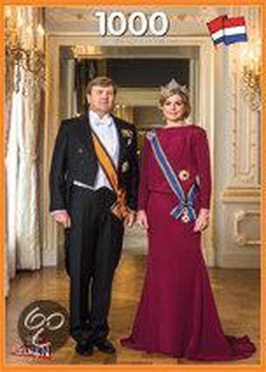 Statieportret van Koning Willem-Alexander en Koningin Maxima in rode jurk (1000 Stukjes)