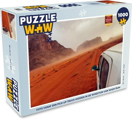 Puzzel 1000 stukjes – Foto vanaf een pick-up truck midden in de woestijn van Wadi Rum – Puzzels