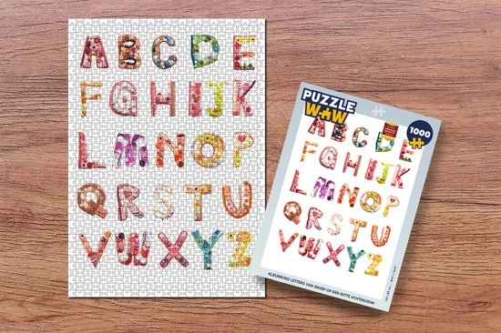 Puzzel 1000 stukjes – Kleurrijke letters van snoep op een witte achtergrond – Puzzels