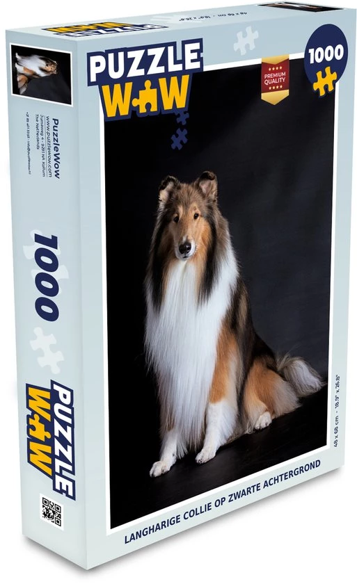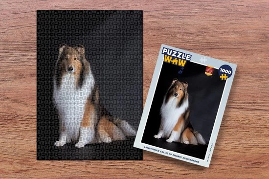 Puzzel 1000 stukjes – Langharige collie op zwarte achtergrond – Puzzels