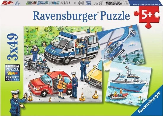 Drie keer de politie in actie! Ter land, ter zee en in de lucht. Kenmerken: