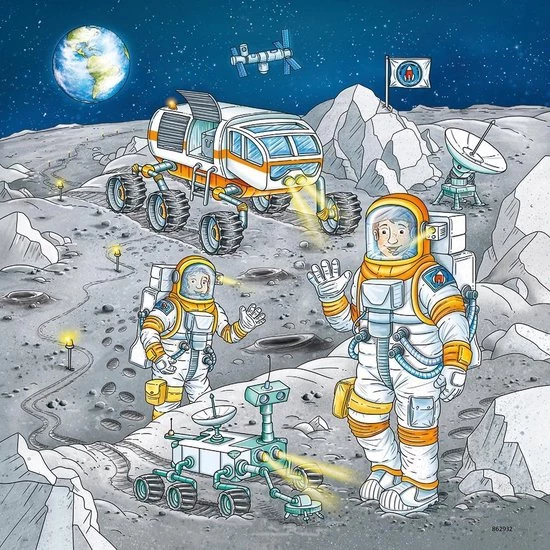 Ravensbuger Puzzels 3×49 stukjes Op ruimtevaartmissie met Tom en Mia