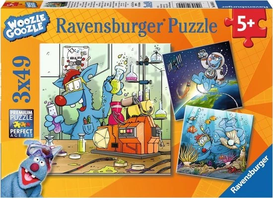 Ravensburger Woozle Goozle puzzel – 3 x 49 stukjes naar de gelijkaardige televisiefiguur