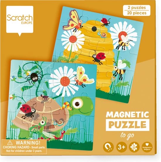 Scratch Puzzel Magnetisch: MAGNETISCH PUZZELBOEK TO GO – FEEST IN DE TUIN 18x18x1.5cm (gesloten), 54x18x0.5cm (open), met 2 magnetische puzzels van 20 stuks, 3+