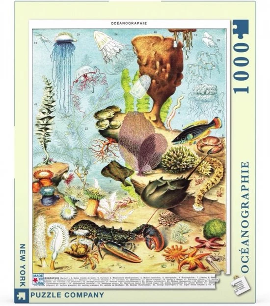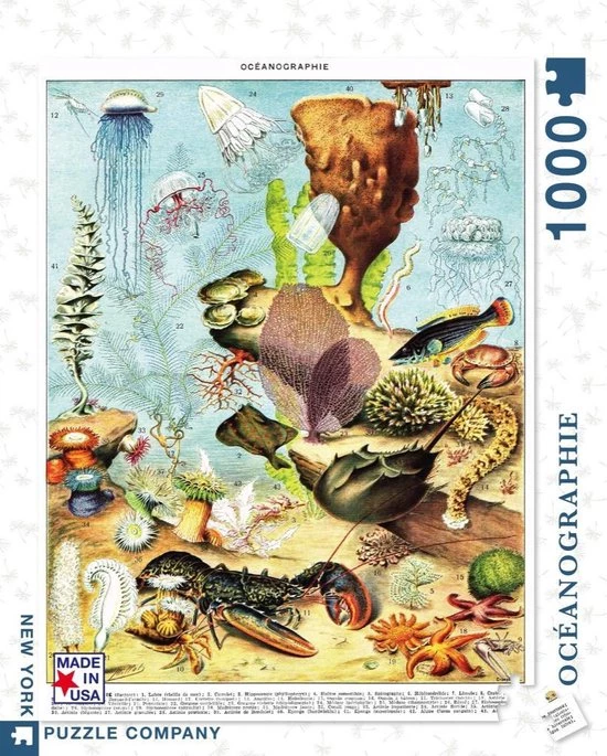 Leer de namen van diverse zeedieren, terwijl je naar hartenlust puzzelt met deze leuke puzzel van New York Puzzle Company! De puzzel heeft 1000 stukjes en heeft een linnen stijl afwerking zodat de puzzel minder glimt. Aanbevolen leeftijd: 13+ jaar.