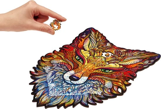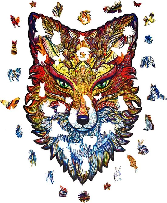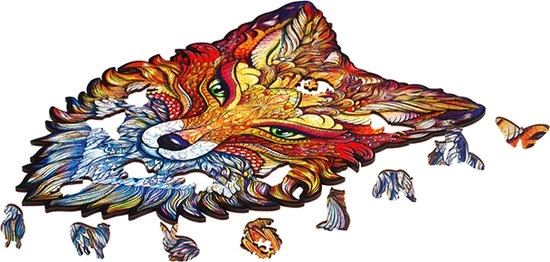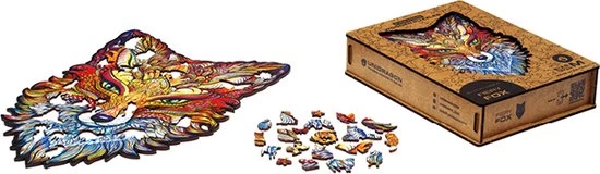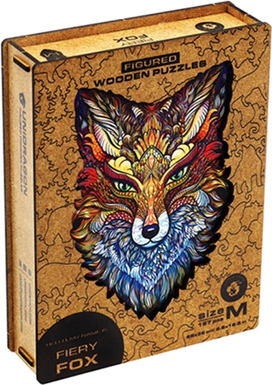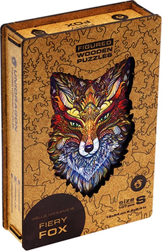 Een vuurflits schoot door de bomen. Wat is het? Zachte donkere pootjes stappen op de grond, een gevoelige neus heeft de prooi al geroken. Nog even en je zult haar niet weerstaan. Ontdek het verraderlijke plan van de roodharige schoonheid, ontrafel haar sluwe plan, leer dit schattige schepsel beter kennen. Een fascinerende reis door het bos vangt vanaf de eerste details. Elk stukje van de puzzel past perfect op zijn plaats. Als je de puzzel in elkaar zet, lijk je het hele verhaal uit het leven van een gevaarlijke jager te volgen. Unieke figuurtjes van bosbewoners zullen je hierbij helpen, zij gaan met je mee op deze nieuwe reis van Unidragon. Zal je de magie van een betoverende blik kunnen weerstaan, zal je alle geheimen en trucs van de Vurige Vos onthullen?