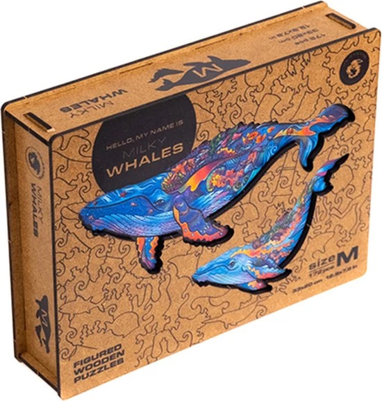 - – Product: UNIDRAGON Houten Puzzel Dier – Melkachtige Walvissen – Medium – 21 x 35 cm