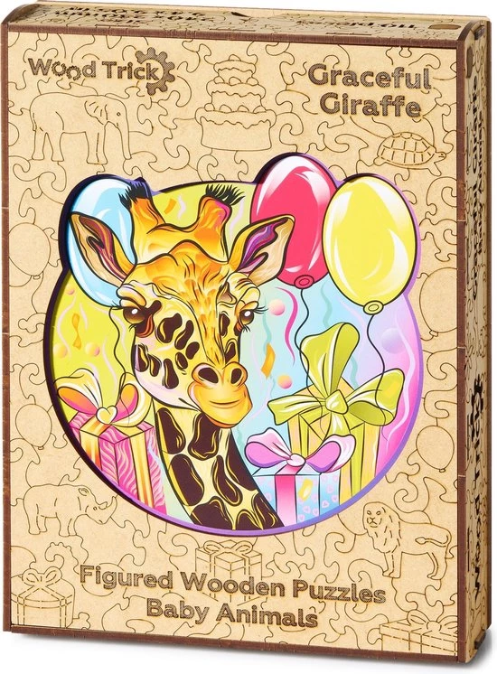 - Product: Wood Trick Sierlijke Giraffe – Houten Vormpuzzel – 24×23 cm – 110 stukjes